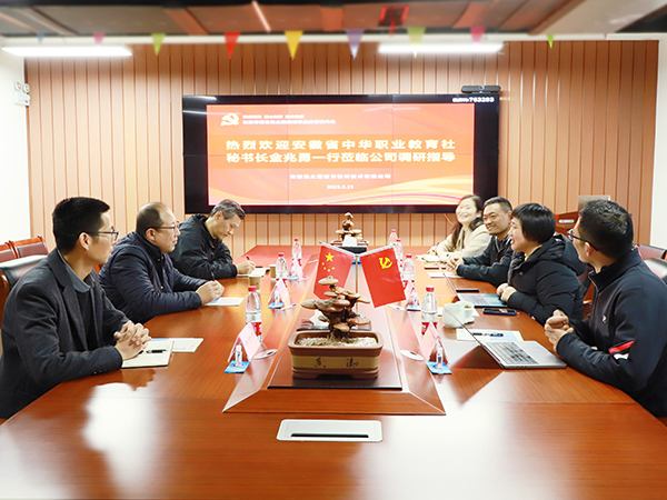 3月23日下午,安徽省中华职业教育社秘书长金兆勇一行莅临渔之蓝考察交流。我司党支部书记、总经理李媛媛,技术负责人李子华等人陪同。