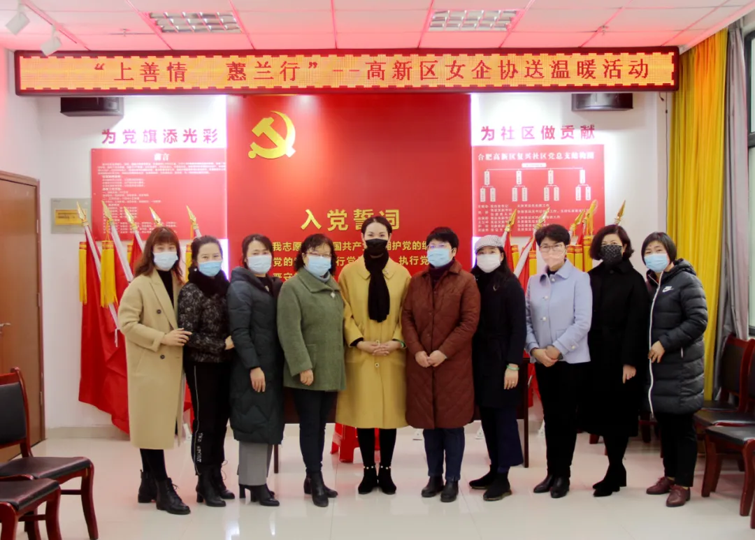 春节临近,为了让合肥高新区孤寡老人欢欢喜喜过大年,1月31日上午,在合肥高新区妇儿工委主任邵海燕、高新区女企业家协会会长姚云的带领下,我司总经理李媛媛和女企协副会长及会员代表们一行,赴高新区长宁中心复兴社区开展关爱老人送温暖捐赠活动。